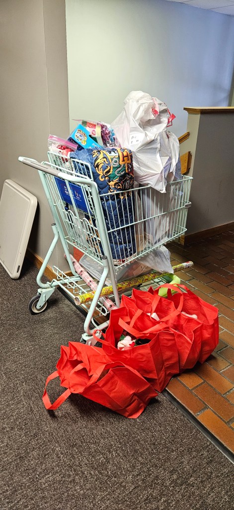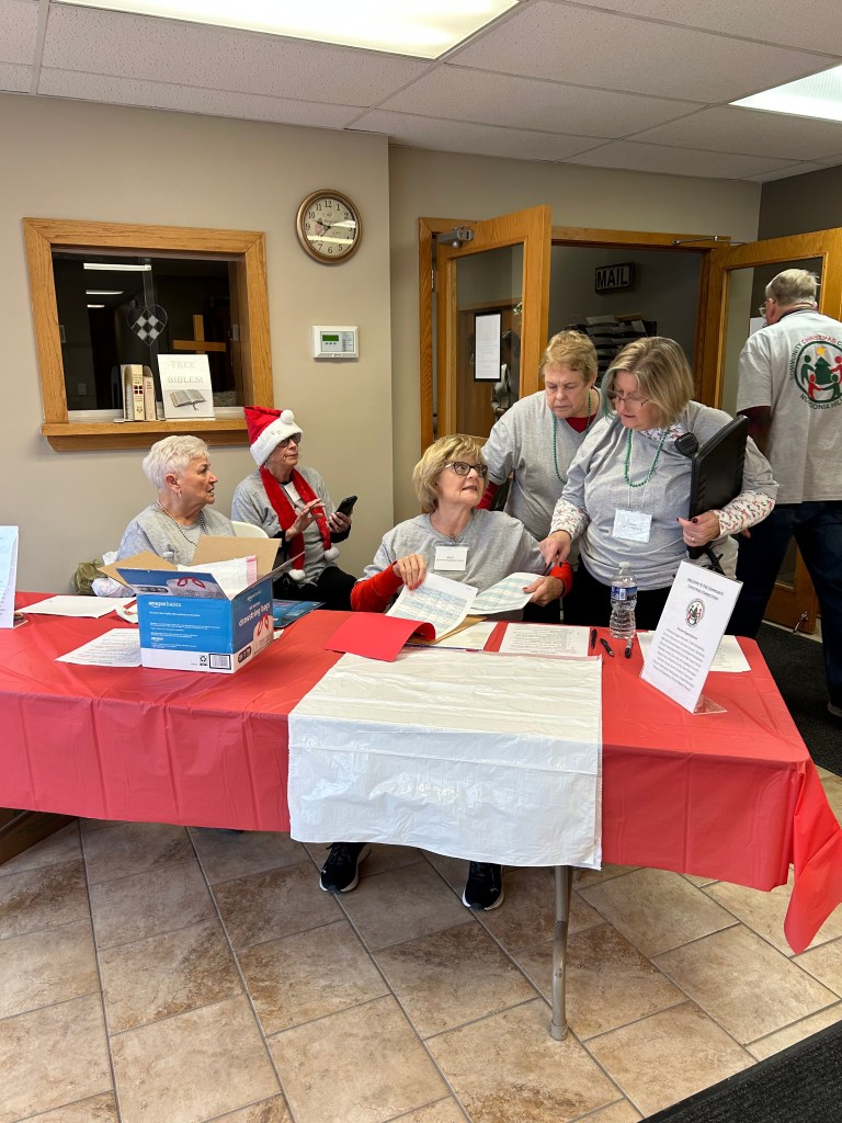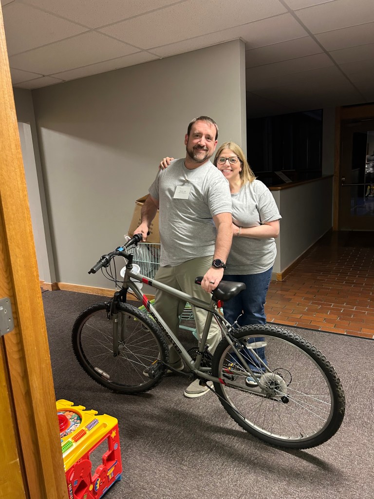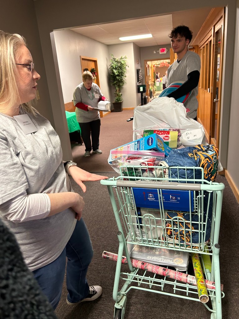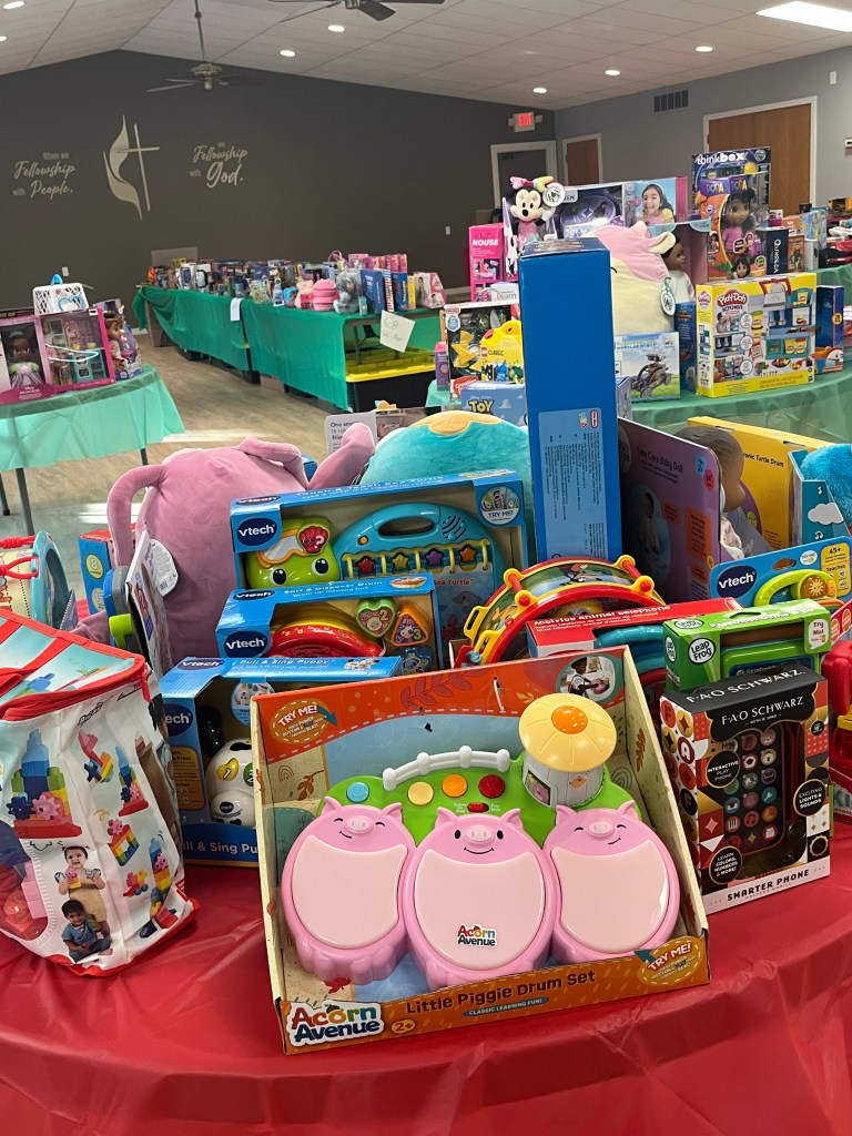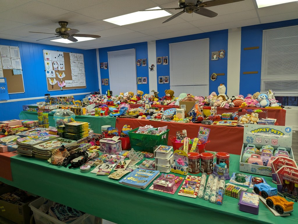 Shopping room organized by age group and price rangeShopping room with toy and blanket tablesShopping room with toy and sock tablesToys to be selectedToys for younger childrenLarger toys for childrenAge group 6-8 toy tableAge 9-13 toy tableOne family’s shopping cartVolunteers Jennette and Josh helping a family (Gail in background)Stocking stuffer roomLynne in the stocking stuffer roomSusan in the stocking stuffer roomMargo and Lynne in the stocking stuffer roomWrapping roomWrapping RoomPremium Room bicycles to be given to familiesPremium Room volunteers Lori and KevinReception Desk with volunteers Nancy, Linda, Karyl, Gail and KarenMiriam and her friend Harry came to spread some Christmas cheerPastor Josh and Elf Dale with Dave in the backgroundPastor Josh and MargoJanet and SarahFrank and GingerGail, Miriam, Lynne and PamGail, Karen, Mike and JohnGail and RenellDale and MikeJosh assisting a familyAl, John and Randy moving boxes